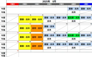 R7年8月の森整形外科 医師診療日は以下の日程で予定しております。 ※森繁医師が休みの場合、森健太郎医師が出勤となります。