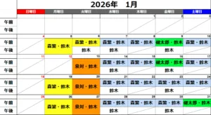 R8年1月の森整形外科 医師診療日は以下の日程で予定しております。 ※森繁医師が休みの場合、森健太郎医師が出勤となります。
