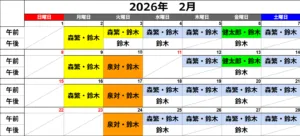 R8年2月の森整形外科 医師診療日は以下の日程で予定しております。 ※森繁医師が休みの場合、森健太郎医師が出勤となります。