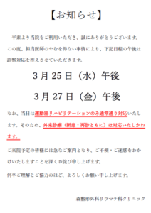 3月25日(水)・27日(金)診療について